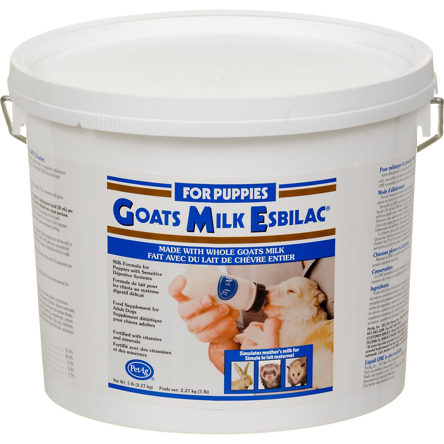 Esbilac puppy milk (powder not liquid). first few feedings and then slowly increase the powder until you're mixing it full strength according to label directions. Esbilac's Goat Milk Powder is the top choice for replacing milk for puppies with sensitive stomachs. Though primarily natural goats milk, the formula also provides a caloric pattern ... Retrieve Here
